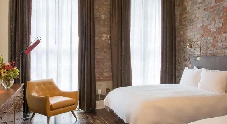 "Much of the hotel still retains historic elements from the building's 19th-century past, including brick walls, wood-plank floors, and exposed piping." Full review
