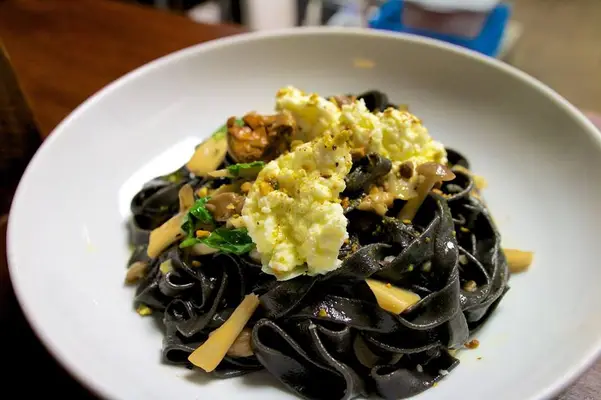 "Customers take their wine and cheese out to the shaded courtyard, which is lit by strings of large bulbs and serves as both a live music venue and dining area for the outdoor bistro." Full review