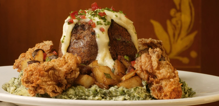 "The group’s steakhouse, meats such as a 24-ounce rib-eye and a roasted prime rib get rubbed with Creole seasoning. Up the NOLA factor even further by adding three jumbo Gulf shrimps to any plate." Full review