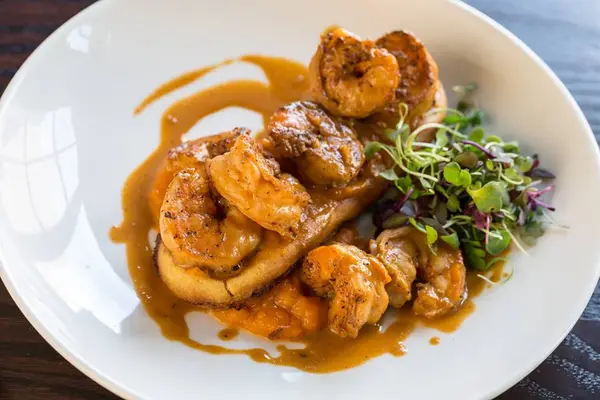 ““New Louisiana” is the concept at this popular spot, with creative spins on local standards such as fried deviled duck eggs on arugula with candy-pecan vinaigrette.”