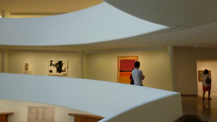 "The unique spiral building designed by Frank Lloyd Wright sends visitors to the top floor first and then allows them to wind their way down along a corkscrew ramp." Full review