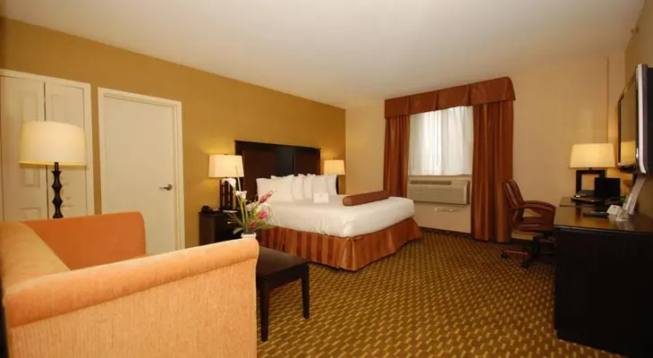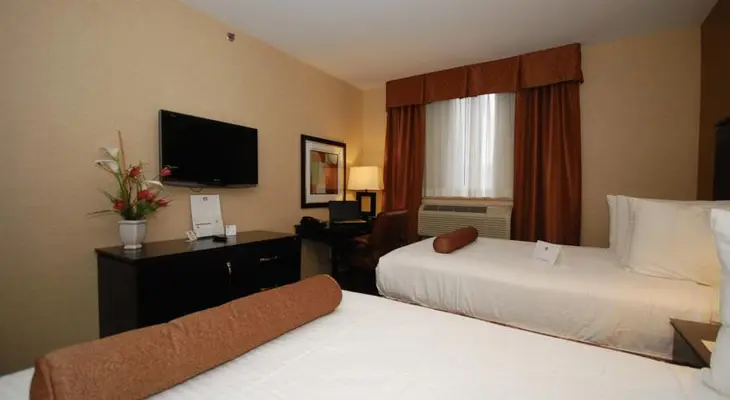 "The 121 rooms are your basic, generic variety with mostly contemporary decor, flat-screen TVs, and mini-fridges. Rates include a decent breakfast buffet of hot and cold items and access to a small gym." Full review