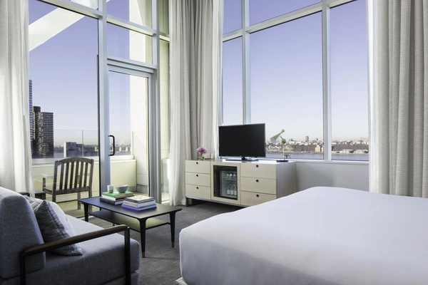 "The 222 rooms and suites feature bold art and colors, and some stunning NYC and Hudson River views."