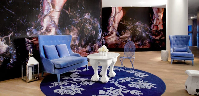 "Beauty and the Beast: lux hotel inspired by Jean Coucteau’s lush ’40s flick. Pass through topiary into surreal French-blue lobby."