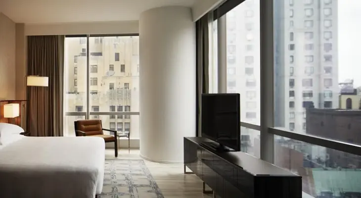 "The Hyatt chain’s flagship is a luxury lodging on 25 floors with 210 rooms and suites with floor-to-ceiling windows offering roomy (for New York City) digs."