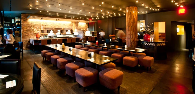 "Glamorous portal into New York’s downtown scene, with a sushi restaurant, industrial-chic look and cityscape views." Full review