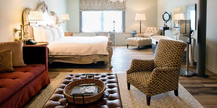 “Smack in the center of the hip Meatpacking District, this exclusive six-story hotel and private club in a converted Meatpacking warehouse will please even the pickiest rock star.”