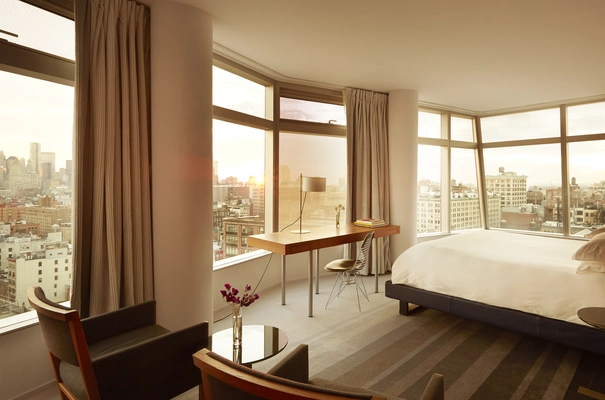 "André Balazs' happening Meatpacking hotel gets an equally hip east side sib with this recently revamped 21-story outpost in the East Village, offering 145 chic, minimalist rooms."
