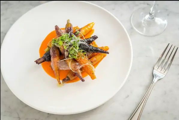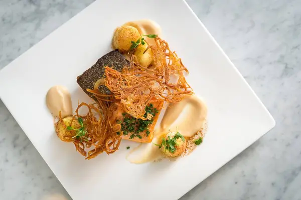 “The menu offers eclectic takes on classic comfort foods and includes dishes like roasted squash ravioli and a cauliflower risotto made with white chocolate.”