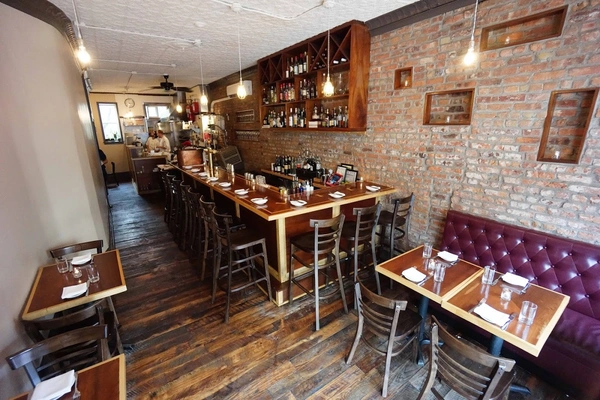 "A pair of fine-dining vets from Alain Ducasse at the Essex House reunite for this intimate Brooklyn restaurant, featuring a mahogany bar, antique oak floor and tin ceiling." Full review