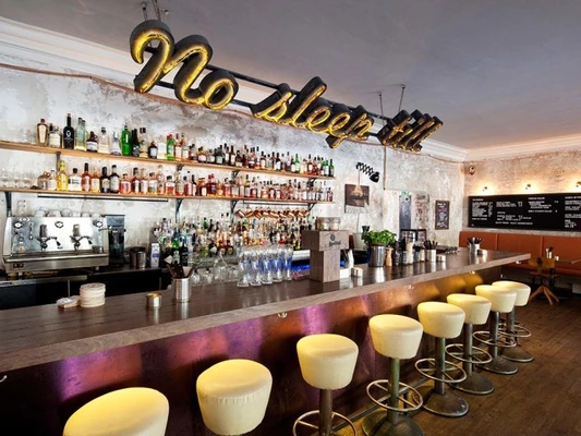 "The griddle turns out reliable burgers, fries, chicken tenders, and hot dogs. The basement joint has dark-wood tables, a handsome tin ceiling, a full bar, and seven flat-screen TVs."