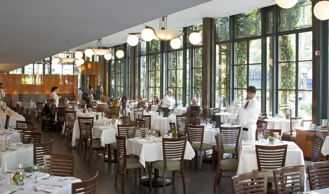 "An elegant outpost, with seasonal patio and rooftop dining, situated in bucolic Bryant Park. L & D (daily), Brunch (Sa & Su). $$$." Full review