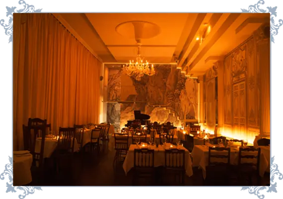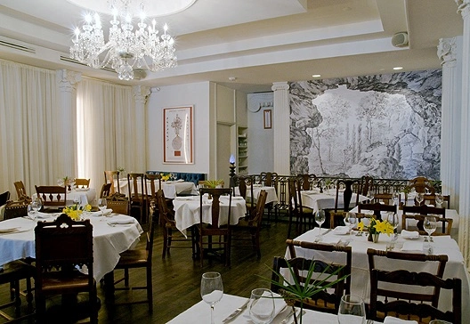 "Walls are decorated with blown up etchings of ornate side entrances to European country mansions...preparations are calculated and flavors are often piquant."