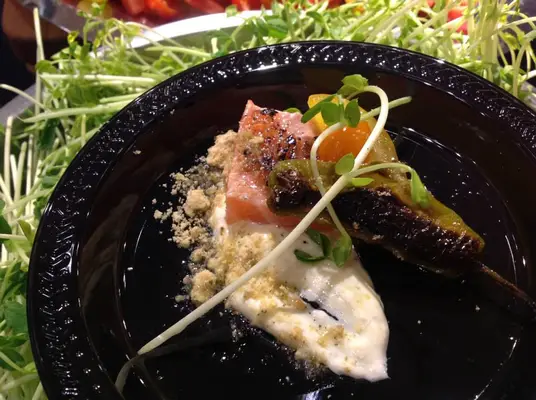 "Highlights including foie gras raspberry crostini, chickpea-crusted skate with mint yogurt sauce, zucchini hummus pizza, duck portobello gratinée." Full review
