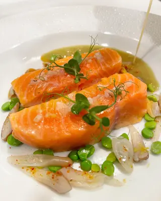 "The two testing menus are popular and include exotic entrees such as Crispy Black Bass served with mini pork buns." Full review