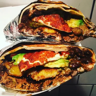 "Focus here is on the patacon - a sandwich that swaps bread for plantains filled with beans, fried cheese, special sauce, and your choice of meat. Our favorite is the one with grilled steak and chorizo" Full review