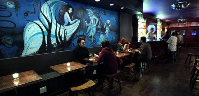 "As the name implies, the Sea Witch is seafood-friendly—with mermaid murals on the walls and a giant fish tank behind the bar." Full review