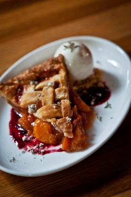 "Fried chicken (lunch and late-night menus only) with fresh biscuits... steaks aged in-house and a daily rotation of both sweet and savory pies do right by their largely clichéd categories." Full review