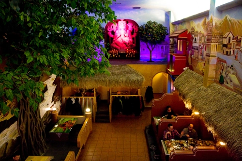 "Vatan’s spacious, elegant dining room is punctuated by elevated, pillow–strewn alcoves, where patrons sit cross-legged and feel like the royalty pictured in Moghul miniature paintings." Full review