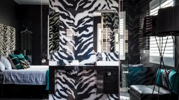“The upstairs of this suburban pub has been transformed with nine flamboyantly appointed rooms featuring African-animal themes and wacky colours.”