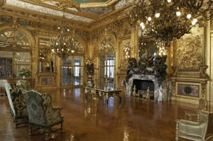 “The Gold Ballroom—Newport's most ornate—decked with gilt chandeliers, panels and mirrors, is modeled after the Hall of Mirrors at Versailles.”