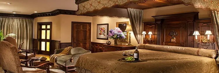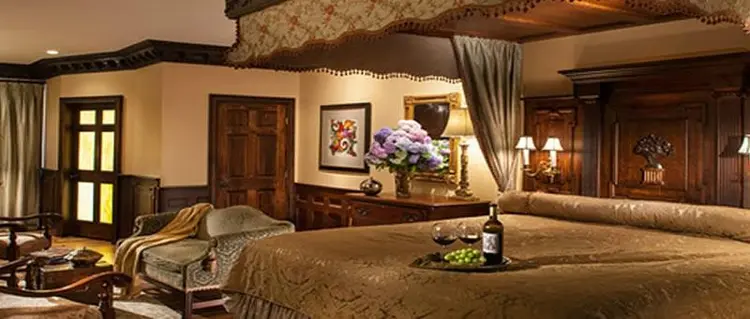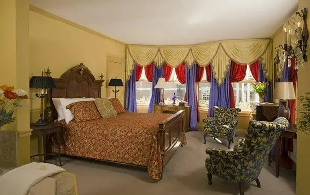 “Rosie, the friendly house bichon, keeps watch at this mid-19th-century inn with decadent suites and guest rooms that exude romance.”