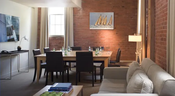 "Sleek and crisp, using original beams and exposed brick walls to create a timeless look. There are a variety of room styles, from studio suites, to deluxe suites for four, to duplex townhouse suites." Full review