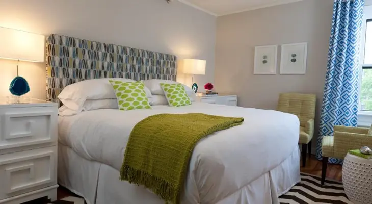 "Newport's newest hotel has the bold attire of a mid-summer beach party with turquoise, lime green and coral prints, ikat headboards and snazzily patterned geometric rugs." Full review