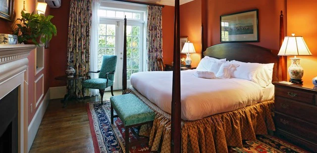 "A lavish inn... all rooms have working gas fireplaces, and a dozen also have whirlpool tubs. A sumptuous breakfast is served." Full review
