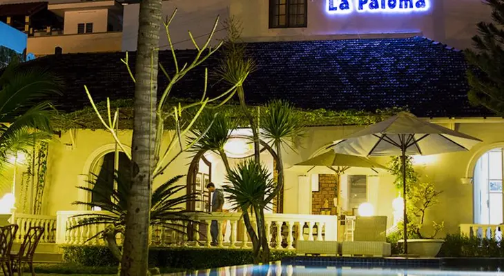 “A Spanish-looking family-run guesthouse with a carefully tended gardens surrounding a pool, La Paloma has simple spacious rooms with Vietnamese-style bathrooms and a sweet little breakfast area.”