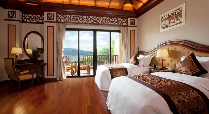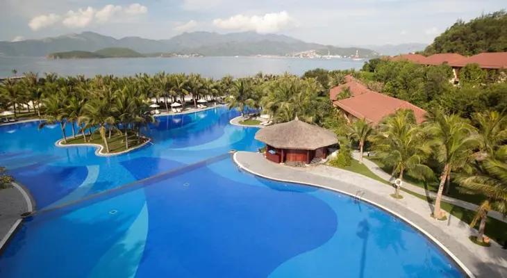 “Set on a private island off the shore of downtown Nha Trang, the four-and-a-half-pearl Vinpearl Luxury Nha Trang's stunning landscaping and neoclassical interiors enhance its beachfront location.”