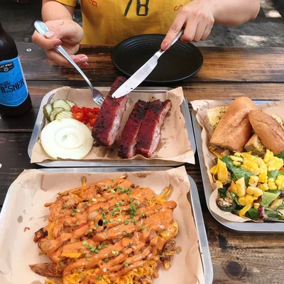 "This hugely popular restaurant/store/hang-out serves delicious North American food including smoked barbecued meats (pork ribs) and the best burgers in town in a yard-like setting." Full review