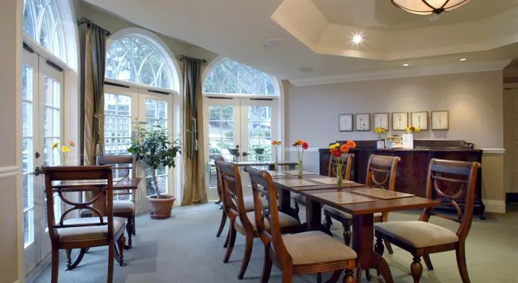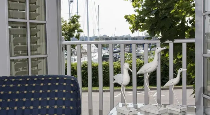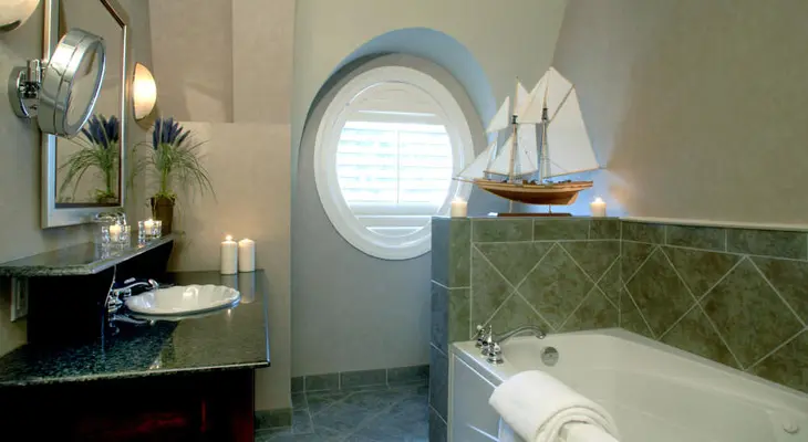 “A luxurious hotel in historic Niagara-on-the-Lake offering king-sized feather-top beds, quality linens, down duvet, a fireplace, whirlpool bath, flat screen TV, and DVD/CD players.”