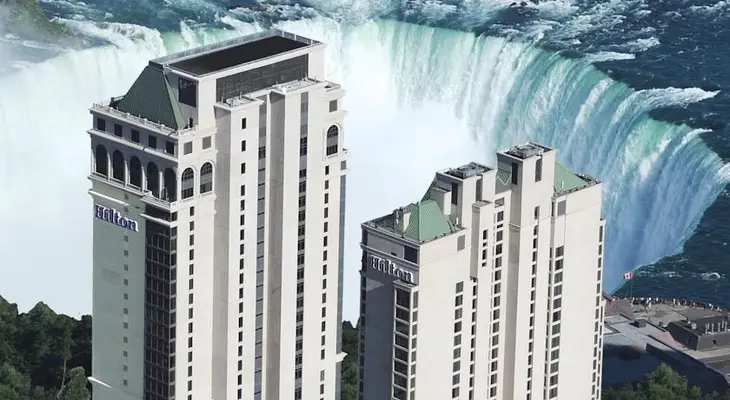 “Overlooking the Canadian and U.S. falls and connected by a glass-enclosed walkway to Fallsview Casino Resort, this remains Niagara's premier hotel and the largest Hilton property in Canada.”