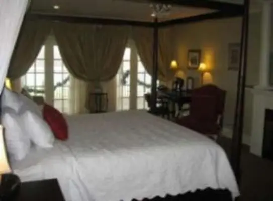 “New-built but mimicking Federal-era design, this stone hotel faces the Niagara River.”