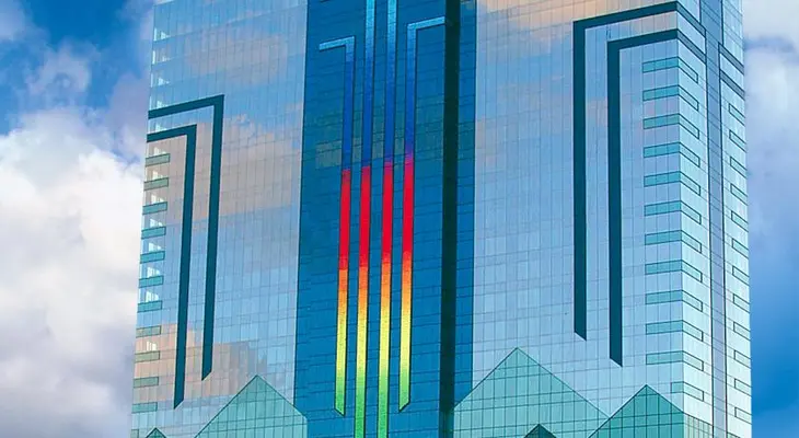 “This 26-story glass hotel, opened in 2006 as part of the Seneca Niagara Casino complex, is a beacon of rainbow-LED-light glam in downtown Niagara Falls.”