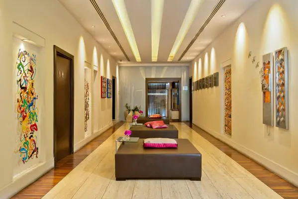 “Though on the small side, the stylish rooms feature neutral colors, large pictures of flowers, and flat-screen TVs. Stop for a nightcap at the hotel's Blue Wine Bar & Lounge.”