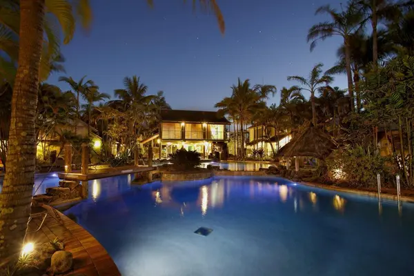 “Set on 4 acres of tropical gardens, with a central lagoon-style pool area and wooden boardwalks meandering through the trees, this is a good family option in the heart of Noosaville.”