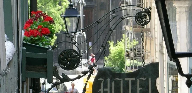 “Hiding behind a 17th-century half-timbered facade, this atmospheric hotel has 27 rooms with old-time French decor and modern bathrooms; most overlook a quiet, plant-filled courtyard.”