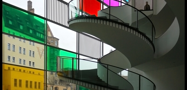 “One of the city’s most stunning architectural statements, with a bold glass front that reveals labyrinthine spiral staircases within, isn’t entirely out of place in the Altstadt.”