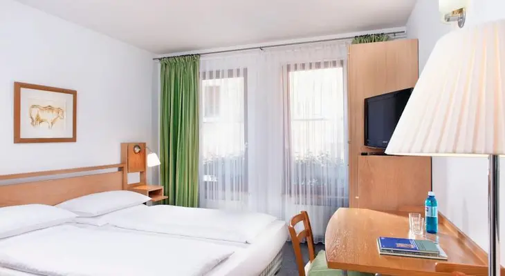 "Smart and welcoming hotel garni tucked into a quiet lane in the northwest Altstadt, with 74 rooms, all with bath or shower and WC and some with balcony."