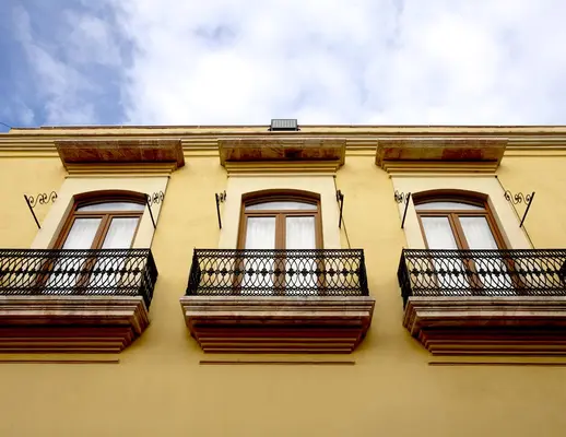 “A Colonial house with simple but cheerfully decorated rooms surrounding a courtyard.”