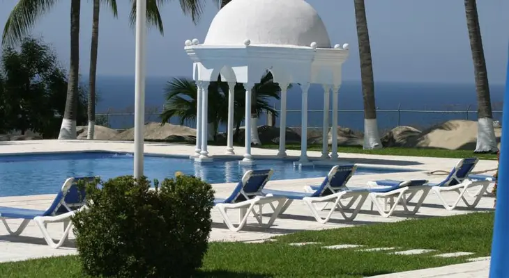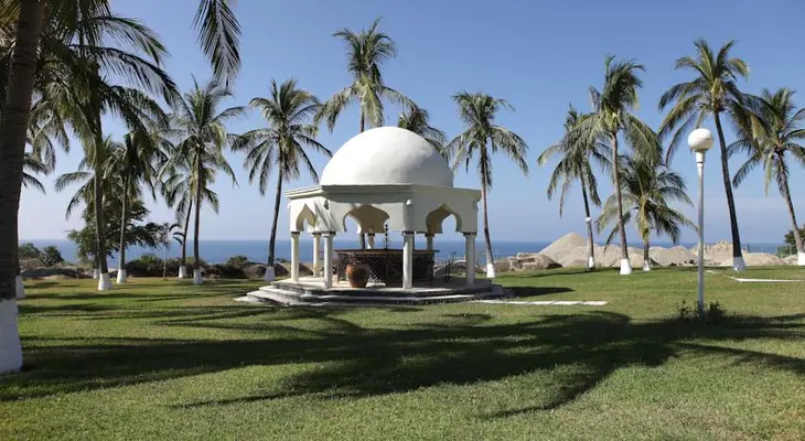 “Like a mirage, this sparkling white hotel sits high on a bluff above the calm waters of Playa Bacocho.”