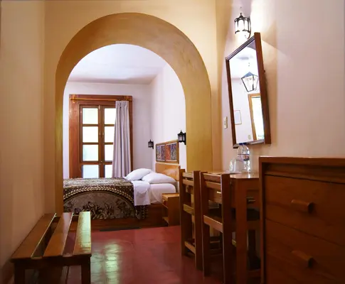 “Tidy, pristine rooms in an old colonial house, each with separate reception area and bathroom. The main draw is the gorgeous, flower-filled courtyard where breakfast is served.”