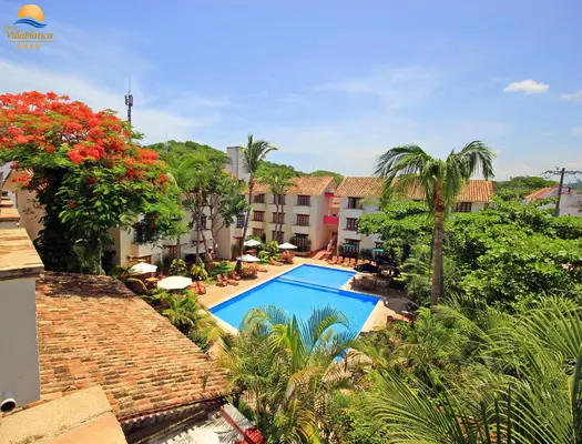“The three-pearl Hotel Villablanca Huatulco is an inviting Mexican hotel with rustic decor and a laid-back, relaxed vibe near Playa Chahue.”