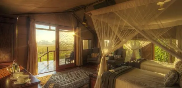 At tents on raised platforms, guests retire to their salas for an afternoon siesta overlooking the floodplains. — Condé Nast Traveler