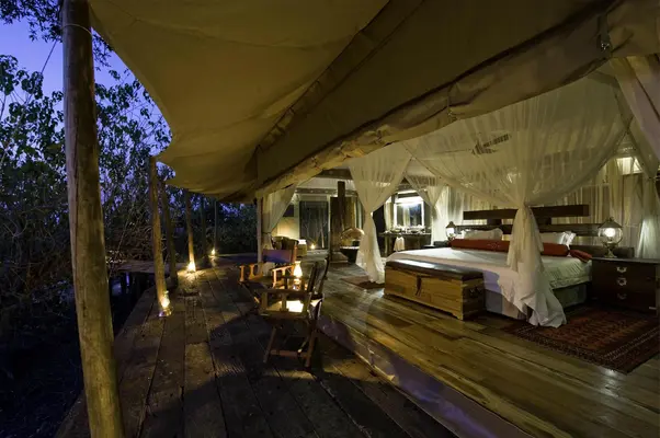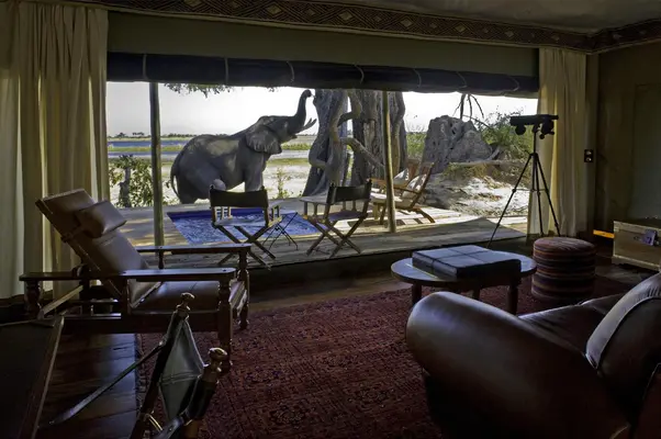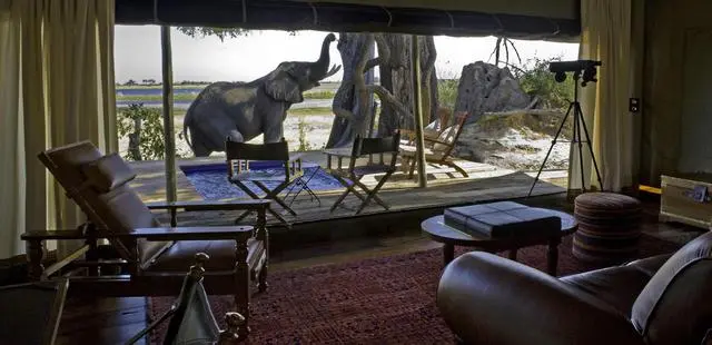 “Classically styled safari camp in the 320,000-acre Selinda Reserve, overlooking picturesque Zibadianja Lagoon.”