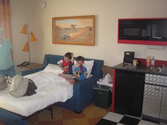 "Family Suites have two bathrooms, convertible couches, and demi-kitchens (no stove)...this is Disney’s only pet-friendly Value resort. It also connects to Disney’s Hollywood Studios and Epcot." Full review