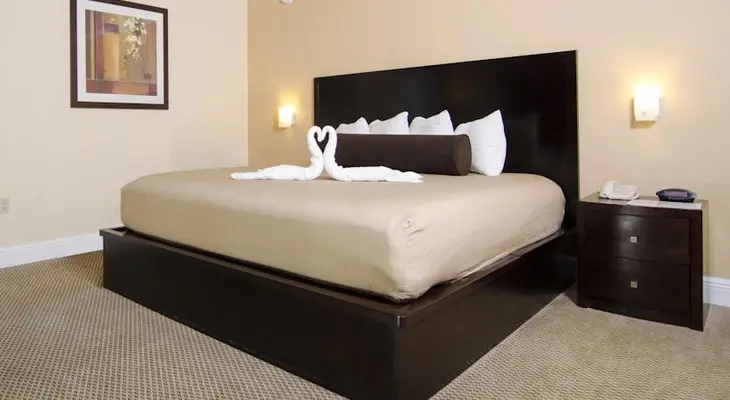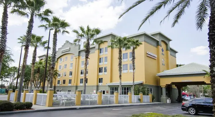 “Conveniently located near Disney World, Galleria Palms is a mid-range hotel with 118 clean, modern rooms with mini-fridges, microwaves, and coffeemakers.”
