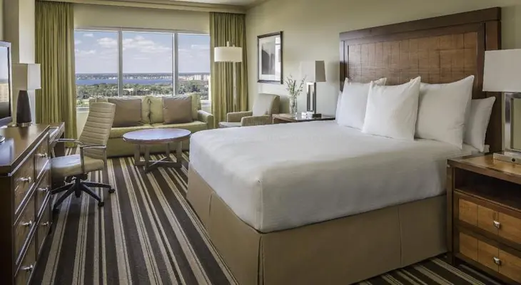 “Business-friendly megaresort with five restaurants, two pools and a spa near Orlando’s top attractions.”